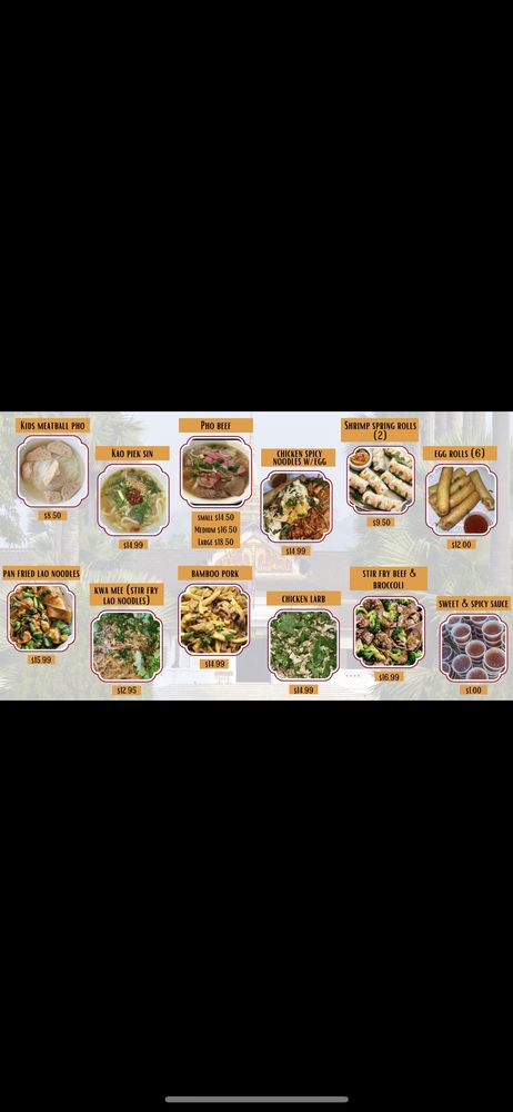 Welcome to A Taste Of Laos, where authentic Laotian cuisine meets warm hospitality. Nestled in Hewitt, TX, at 108 Jim Dr, this Asian-owned and women-owned gem promises an unforgettable dining experience. Offering a diverse menu, you'll find tantalizing dishes like Kwa Mee Chicken and Beef Pho, with prices ranging from $14.95 to $18.74. Highlights include the renowned Lao Sausage and crispy fried dumplings, paired with delectable sauces that elevate every bite.